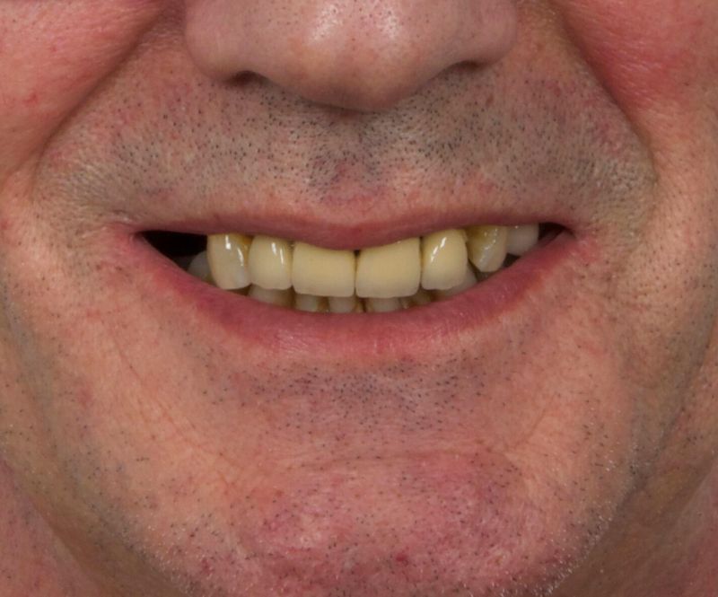 Prótesis superior atornillada en PMMA, diseñada para durar y adaptarse al paciente.